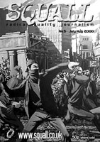 Towards the end of that decade, the international Anti/Alter-Globalisation movements began hitting the streets of cities hosting summits of the powerful, then after 9-11, huge anti-war mass protests emerged. During this time, SQUALL had activist/writers not content just doing A-to-B Stop-The-War marches, and were actually in war-torn Iraq filing exclusive eyewitness accounts, as well as in Palestine during the Second Intifada. (See in Frontline Communiques).